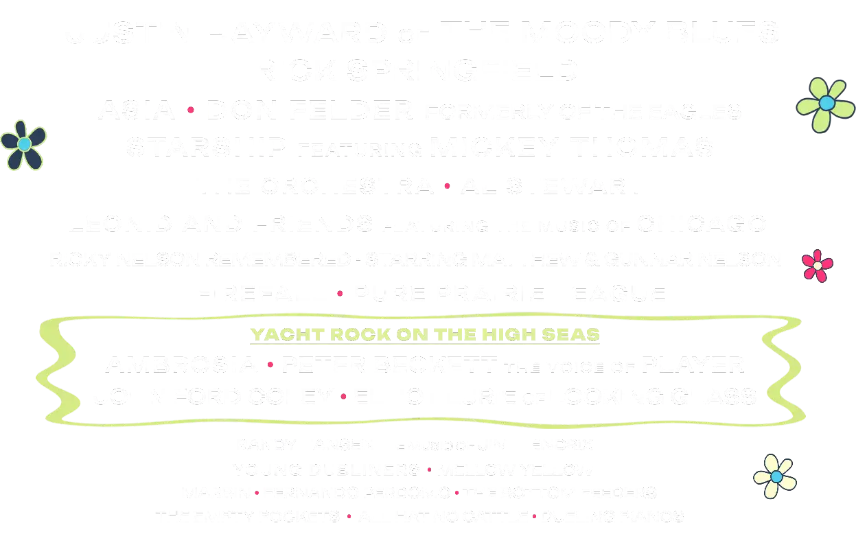 - A curated lineup featuring Classic Rock legends, Yacht Rock voices, and genre-crossing acts.