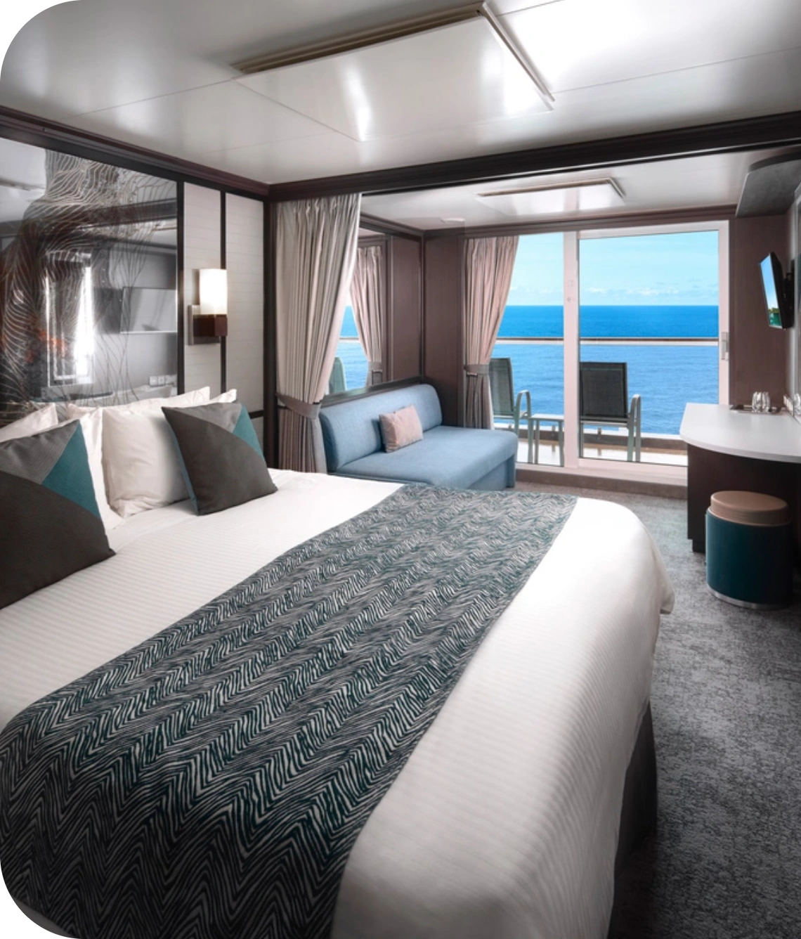 Gold VIP ExperienceSpacious Gold VIP comfort featuring private,aft-facing balcony views and personalized service.
