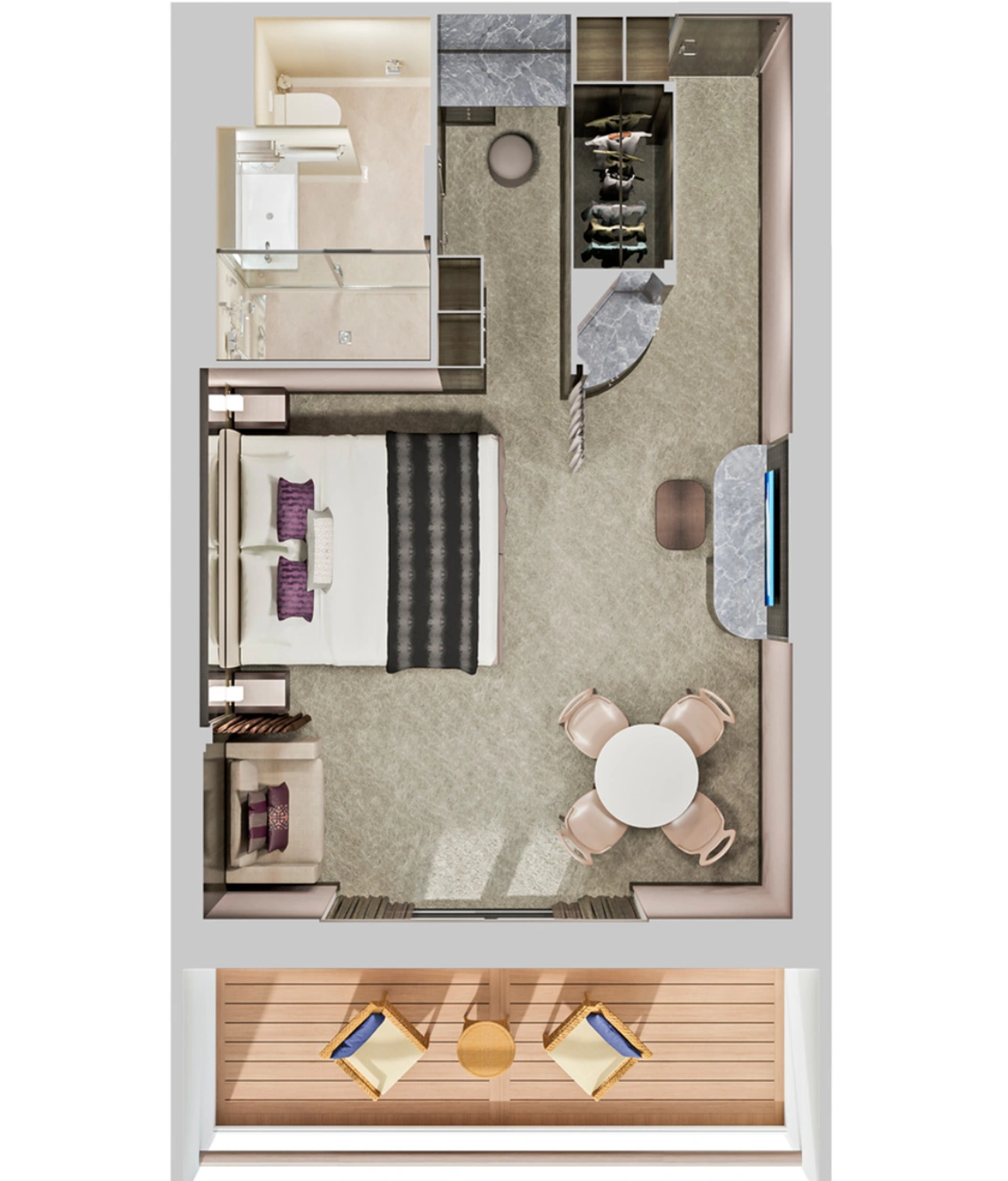 Gold VIP ExperienceSpacious Gold VIP comfort featuring private forward-facing balcony views and personalized service.
